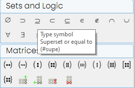 Added advanced sets palette as an option in the equations. This version includes the symbols for the 5 standard sets. (These already had keyboard codes, but didn't appear on any palettes)